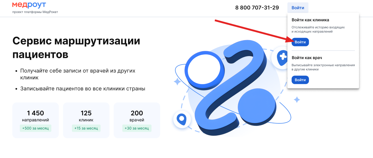Доступ к личному кабинету клиники есть у владельца клиники, после заключения лицензионного договора МедРоут.