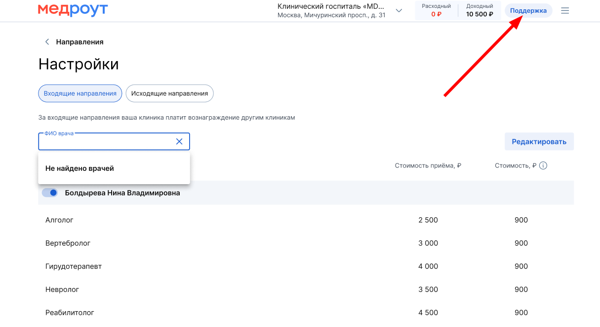ⓘ Врачи вашей клиники добавляются в МедРоут автоматически с ПроДокторов. Список обновляется каждое утро.