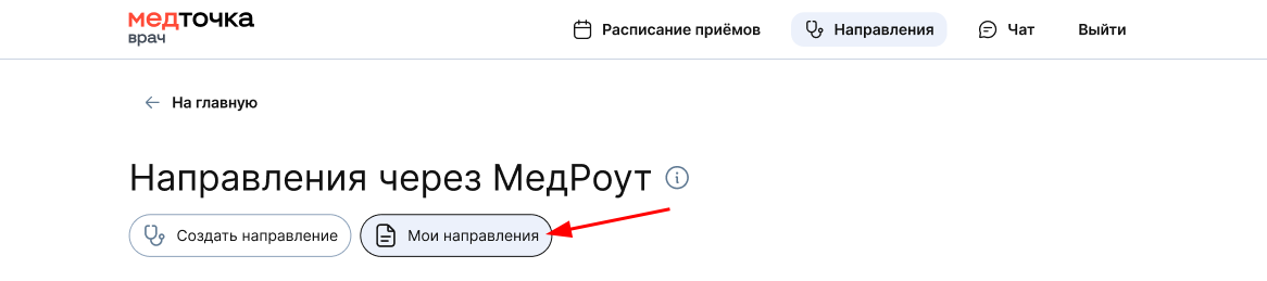 1. В личном кабинете МедТочка Врач нажмите «Направления».