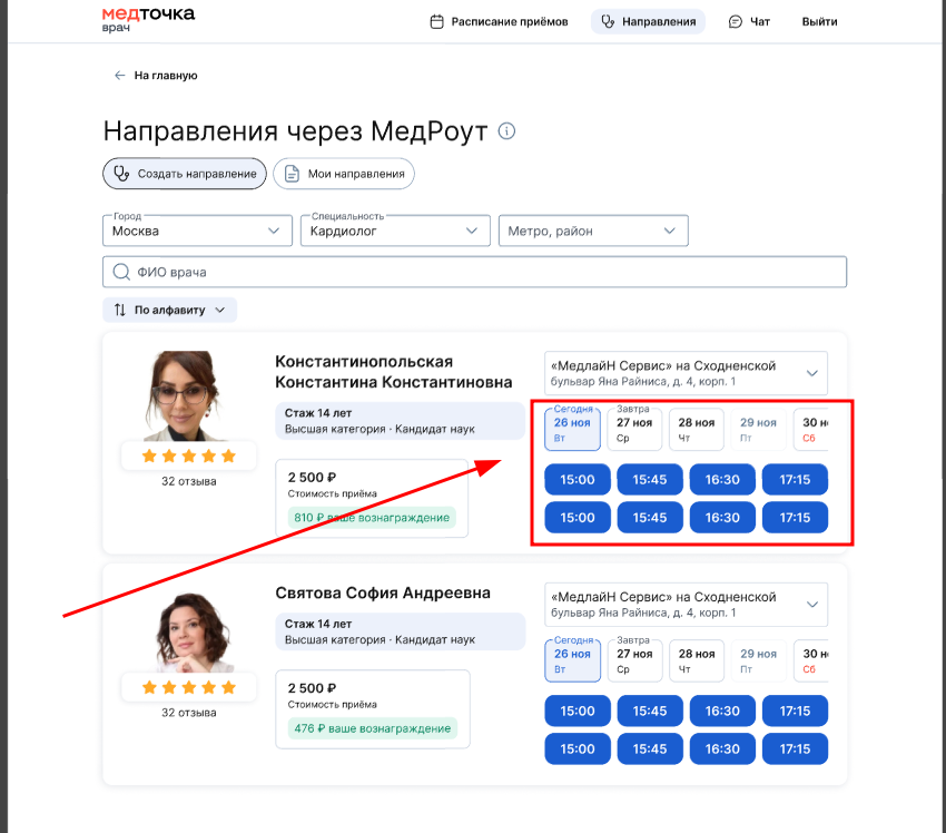- Войдите в личный кабинет МедТочка Врач и откройте раздел «Направления».